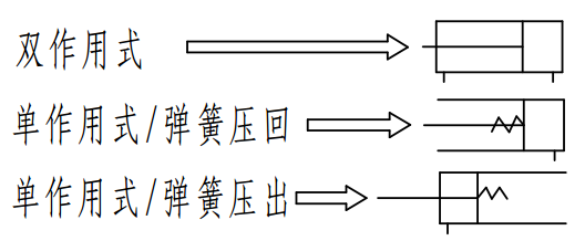 1.无缓冲气缸;2.固定缓冲气缸;3.可调缓冲气缸。